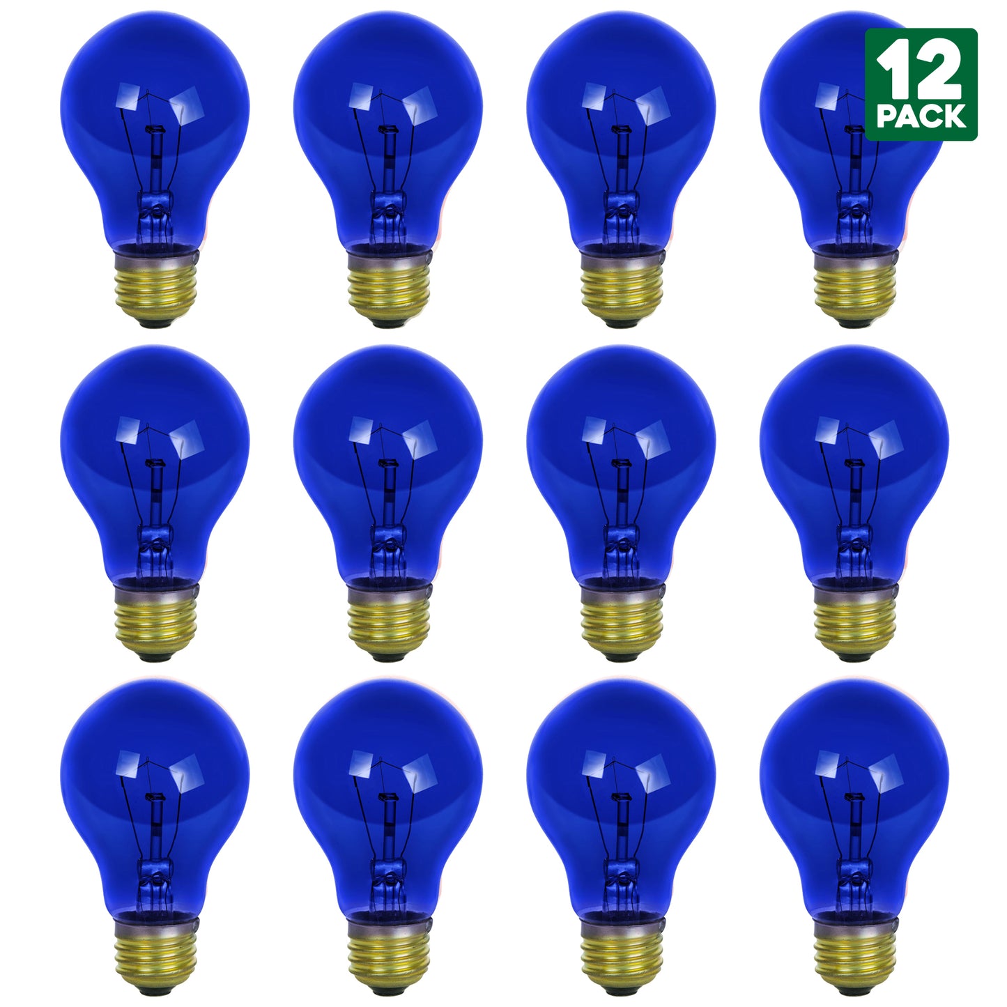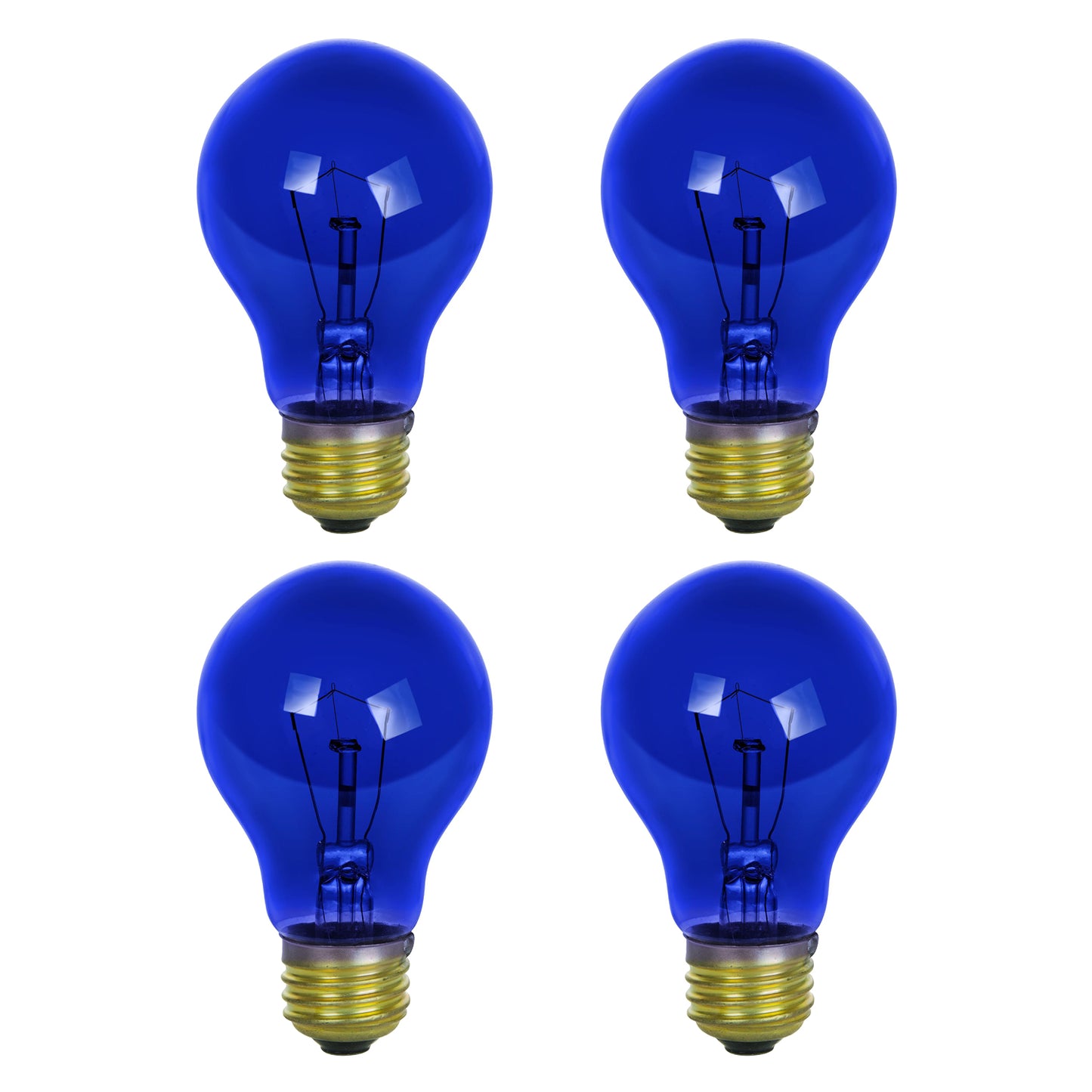 2 Pack of Sunlite 25 Watt A19 Colored, Medium Base, Transparent Blue