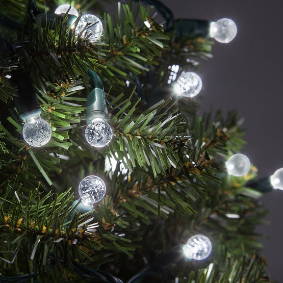 50 Light LED Razzberry (G12) Light Set Pure White Bulbs on Green Wire, Approx. 17'8" Long