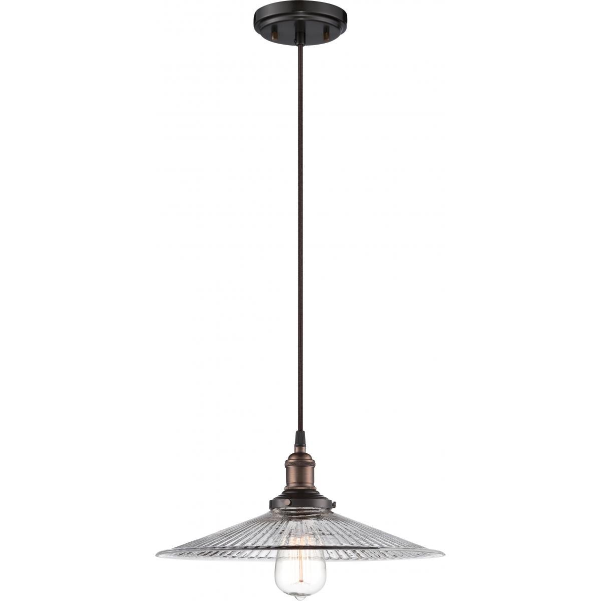 60-5516 1 LT VINTAGE PENDANT Vintage - 1 Light Pendant with Clear Ribbed Glass - Rustic Bronze Finish