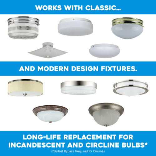 - UPGRADE TO LED – Keep your existing decorative fixtures and upgrade to energy efficient LED technology. Simple wiring for easy installation. Commercial grade with a heavy duty metal base. Can also be used to replace fluorescent Circline bulbs. (Ballast bypass required)