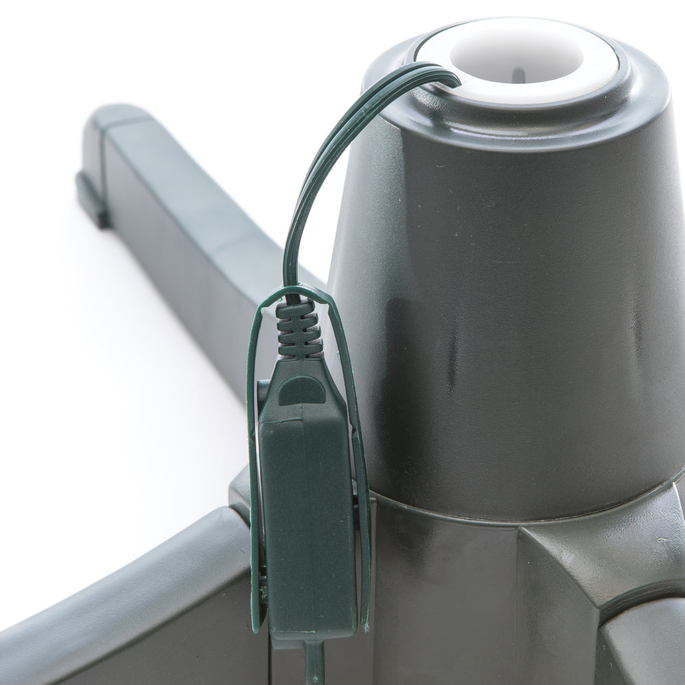Vickerman 24" powerful Electric Rotating stand for use with a 7.5' tree. Fits trees that weigh less than 80 lbs. with a pole size between 3/4" and 1 1/4". The full 360 degree revolution takes 70 seconds with no cord tangling. Includes a 6.5' green power cord with an On/Off switch at the base of the stand that allows you to choose between rotation or no rotation.