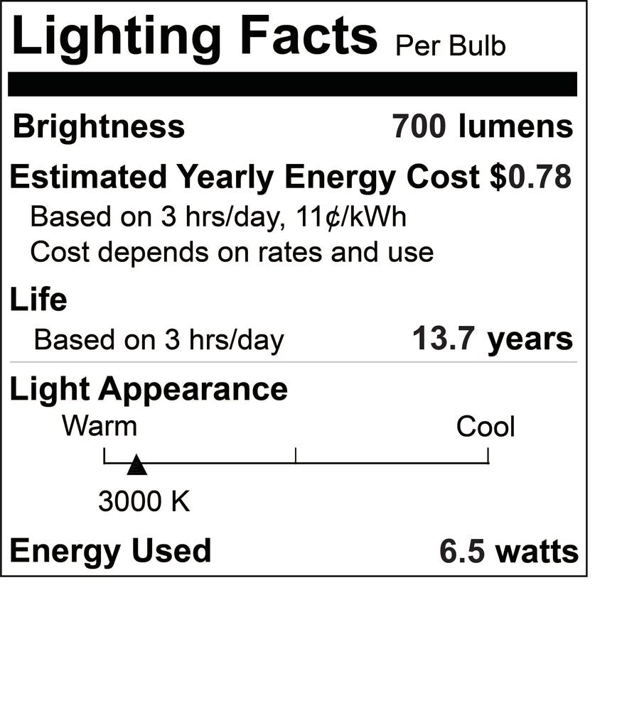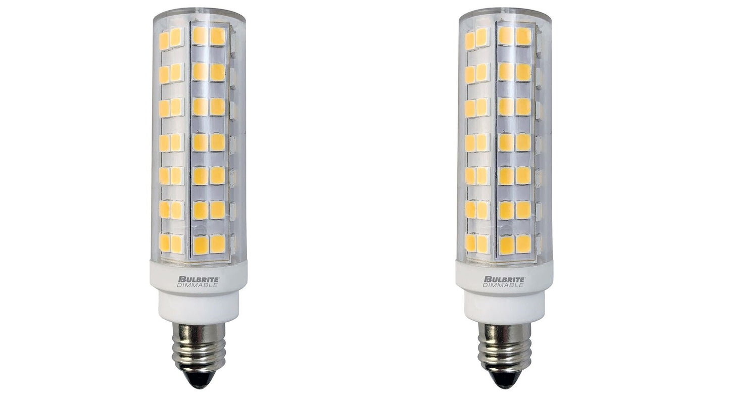 Bulbrite Pack of (2) 6.5 Watt 120V Dimmable Clear T6 LED Mini Light Bulbs with Mini-Candelabra (E11) Base, 3000K Soft White Light, 700 Lumens