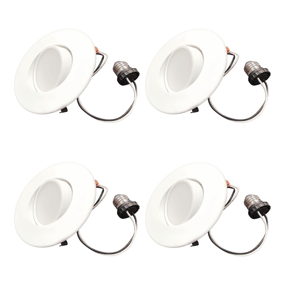 Bulbrite Pack of (4) 9 Watt Adjustable 4" Integrated LED Recessed Downlight with E26 Quick Connect Adaptor and Gimbal, 2700K Warm White Light, 650 Lumens