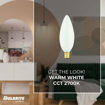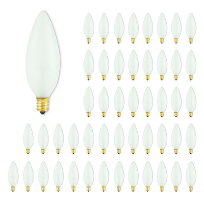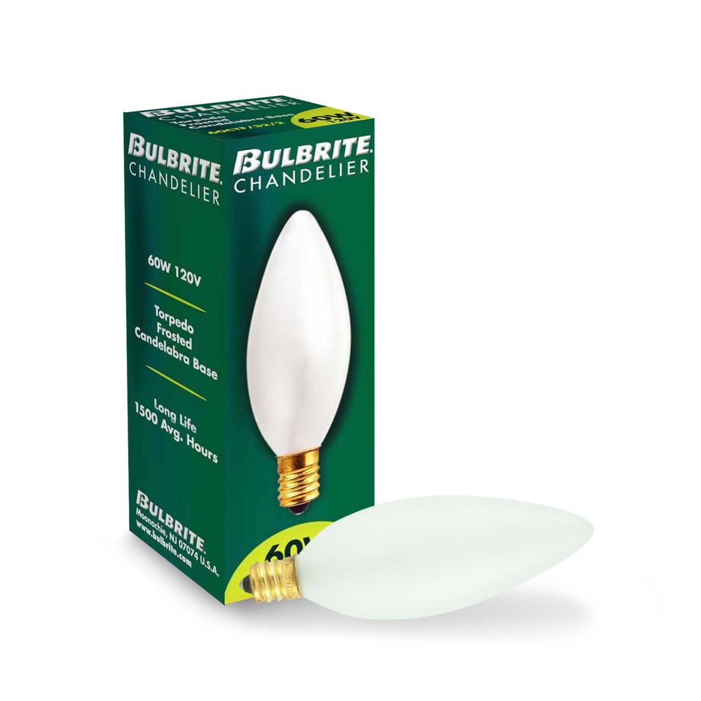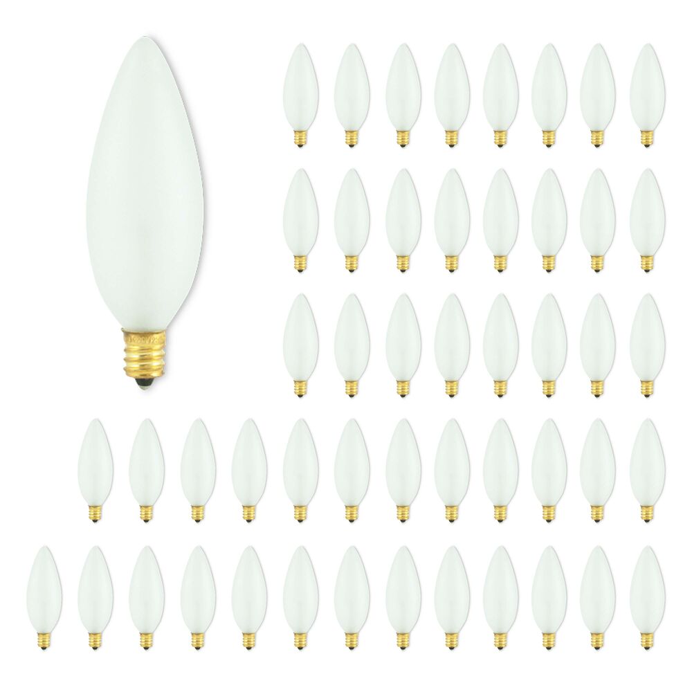 Bulbrite Pack of (50) 60 Watt Dimmable Frost B10 Torpedo 32mm Incandescent Light Bulbs with Candelabra (E12) Base, 2700K Warm White Light