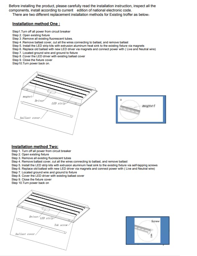 - Easy Magnetic Installation: This retrofit kit is designed for fast and hassle-free installation with a magnetic mounting system that allows you to attach the unit directly to existing troffer fixtures. No tools are required, making it an ideal upgrade option for facility managers, contractors, or homeowners who want to save time and labor costs.