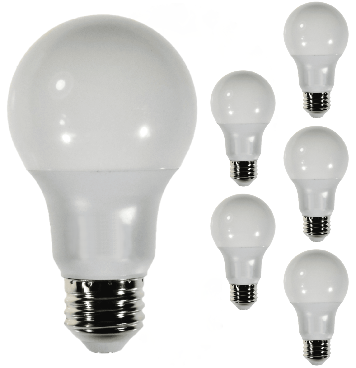 Damar A19 LED Light Bulb 8W 800 Lumen E26 Medium Base 5000K Bright White for Bedroom Living Room Lamp Home Light Bulb 120V CRI80 230° Beam Angle Damp Rated White Finish Pack of 6