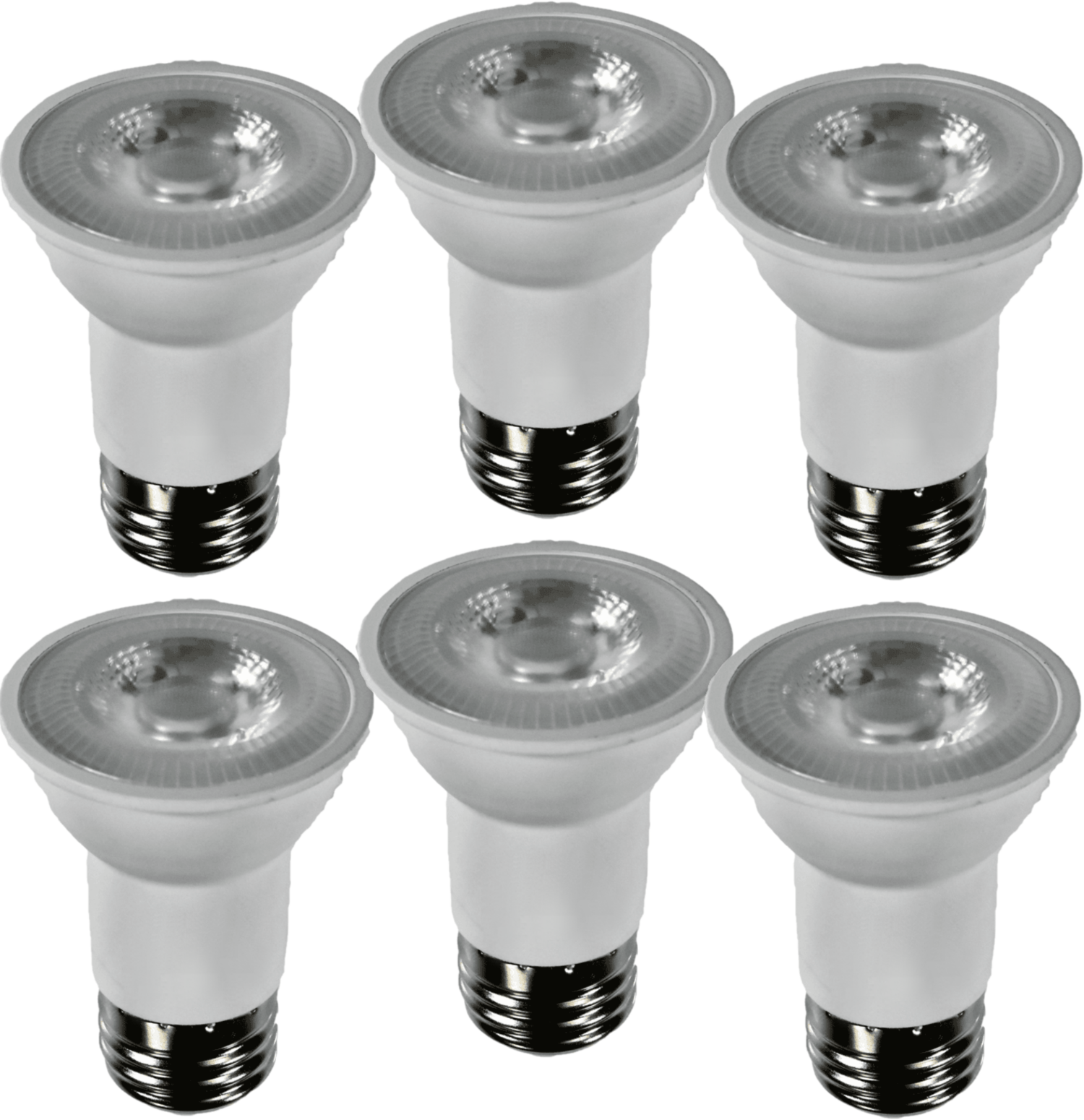Damar PAR16 LED Long Neck Flood Light Bulb 6.5W 500 Lumen E26 Medium Base 5000K Bright White Ideal for Track & Recessed Spot Light Bulbs 120V CRI80 40° Beam Angle Dimmable White Finish Pack of 6