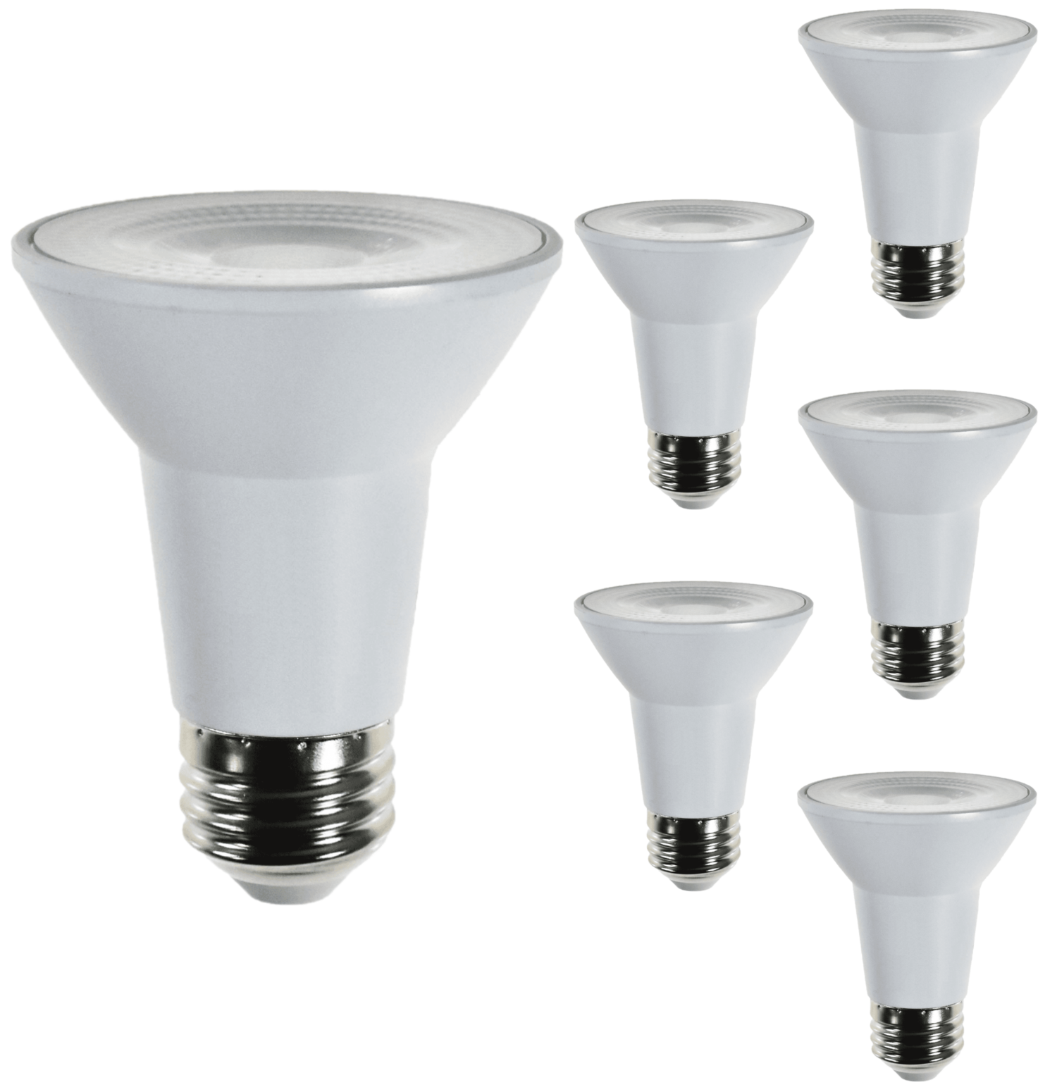 Damar PAR20 LED Long Neck Flood Light Bulb 5W 500 Lumen E26 Medium Base 6500K Daylight Ideal for Track & Recessed Spot Light Bulbs 120V CRI80 40° Beam Angle White Finish Pack of 6
