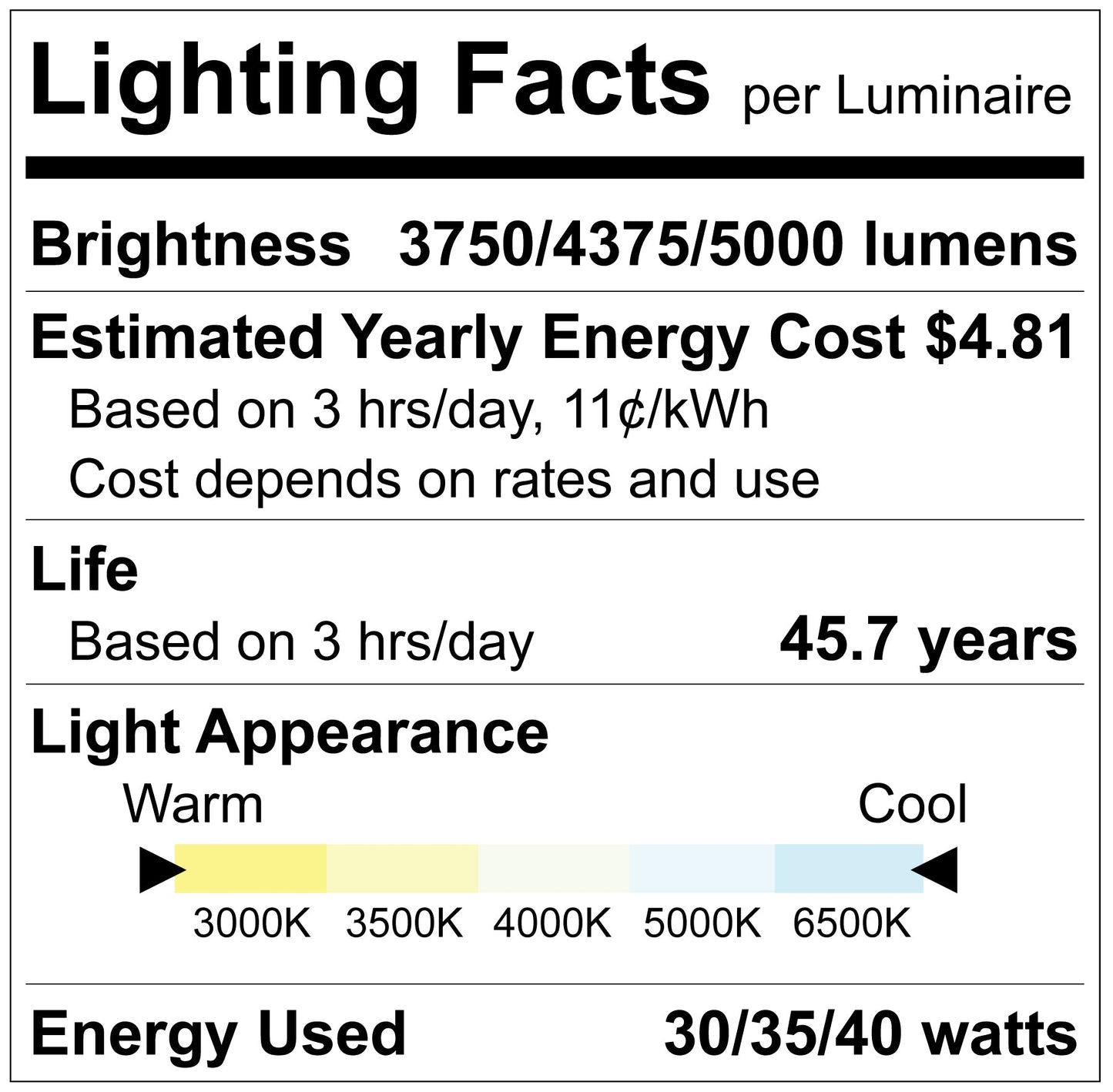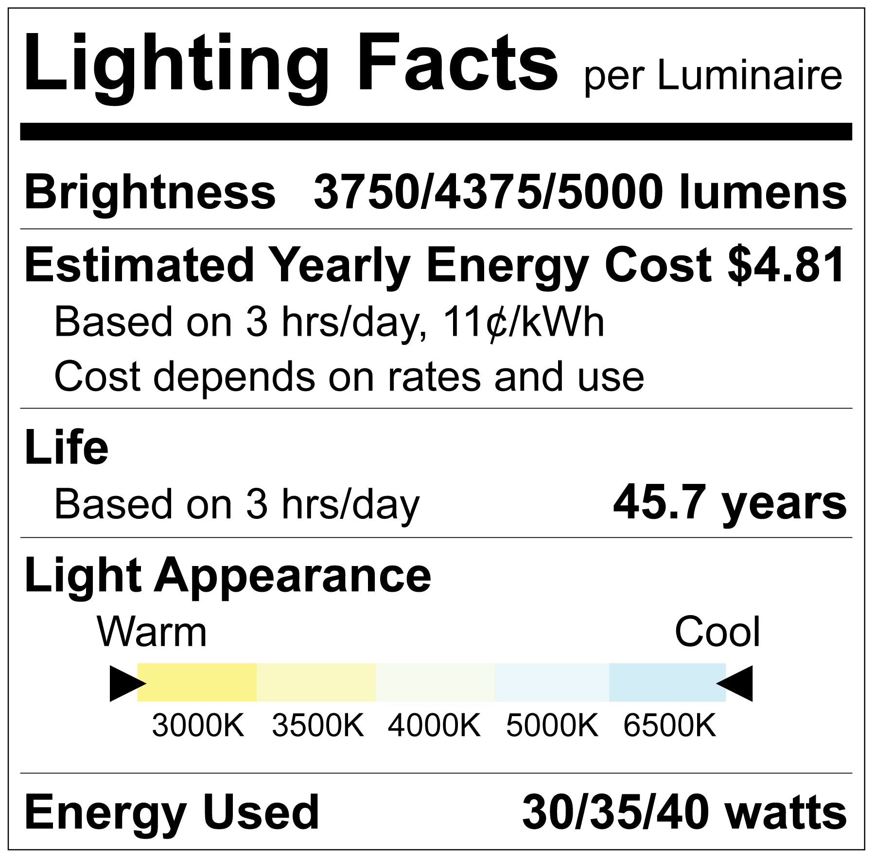 - Color (CCT): 3000K/3500K/4000K/5000K/6500K