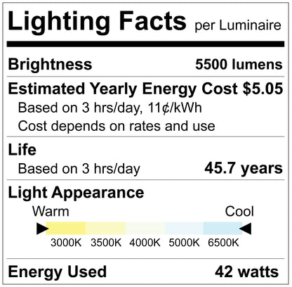 - Color (CCT): 3000K/3500K/4000K/5000K/6500K