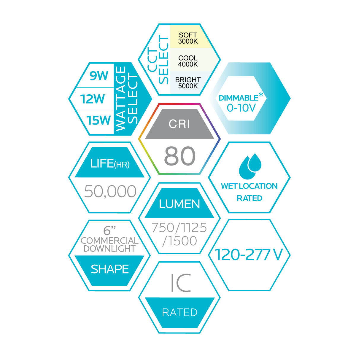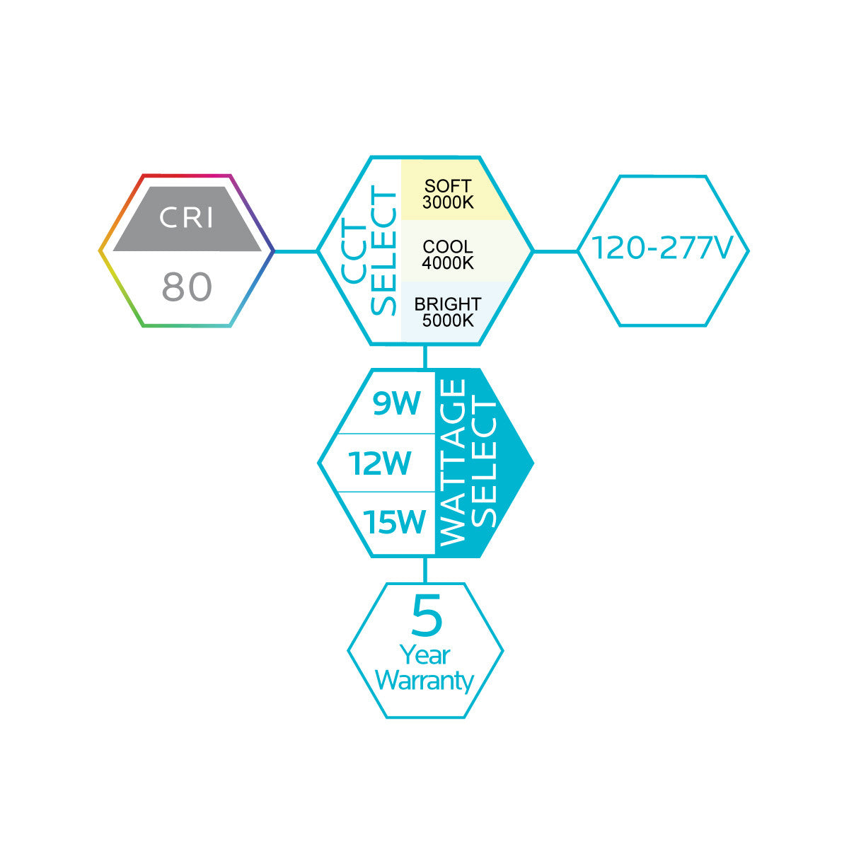 Luxrite Cct Change LED/CDL6/3WO/3CCT/B/JB 3000K/4000K/5000K Cct Select