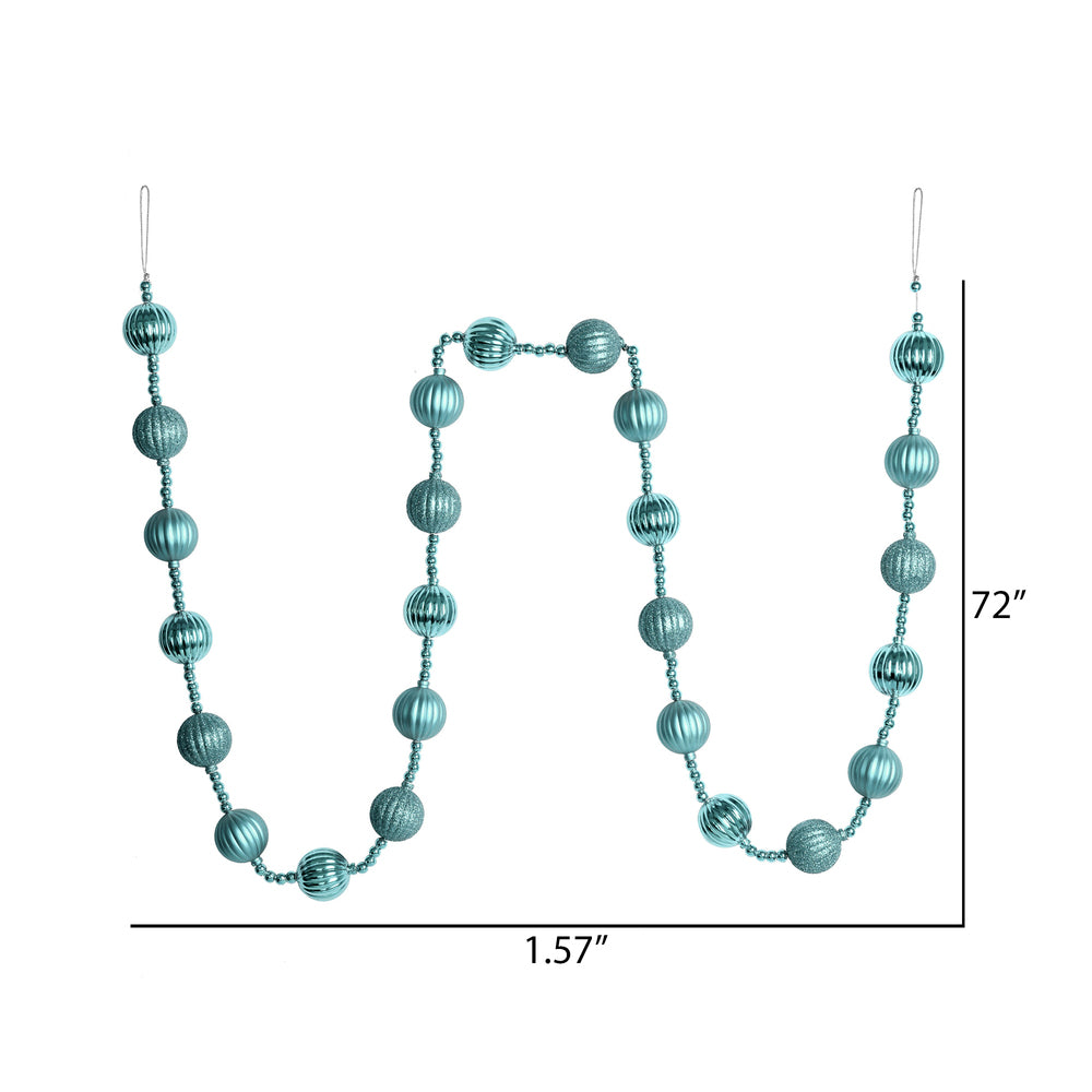 Vickerman 6' Baby Blue Stripe Ball Ornament Christmas Garland. This garland features 1.5" ball ornaments in a mixture of shiny matte and glitter finishes seperated with .25" shiny ball ornaments. The 1.5" ornaments are made of shatterproof plastic and feature a line design. This ornament garland is perfect for hanging on your holiday tree or decorating your mantle.