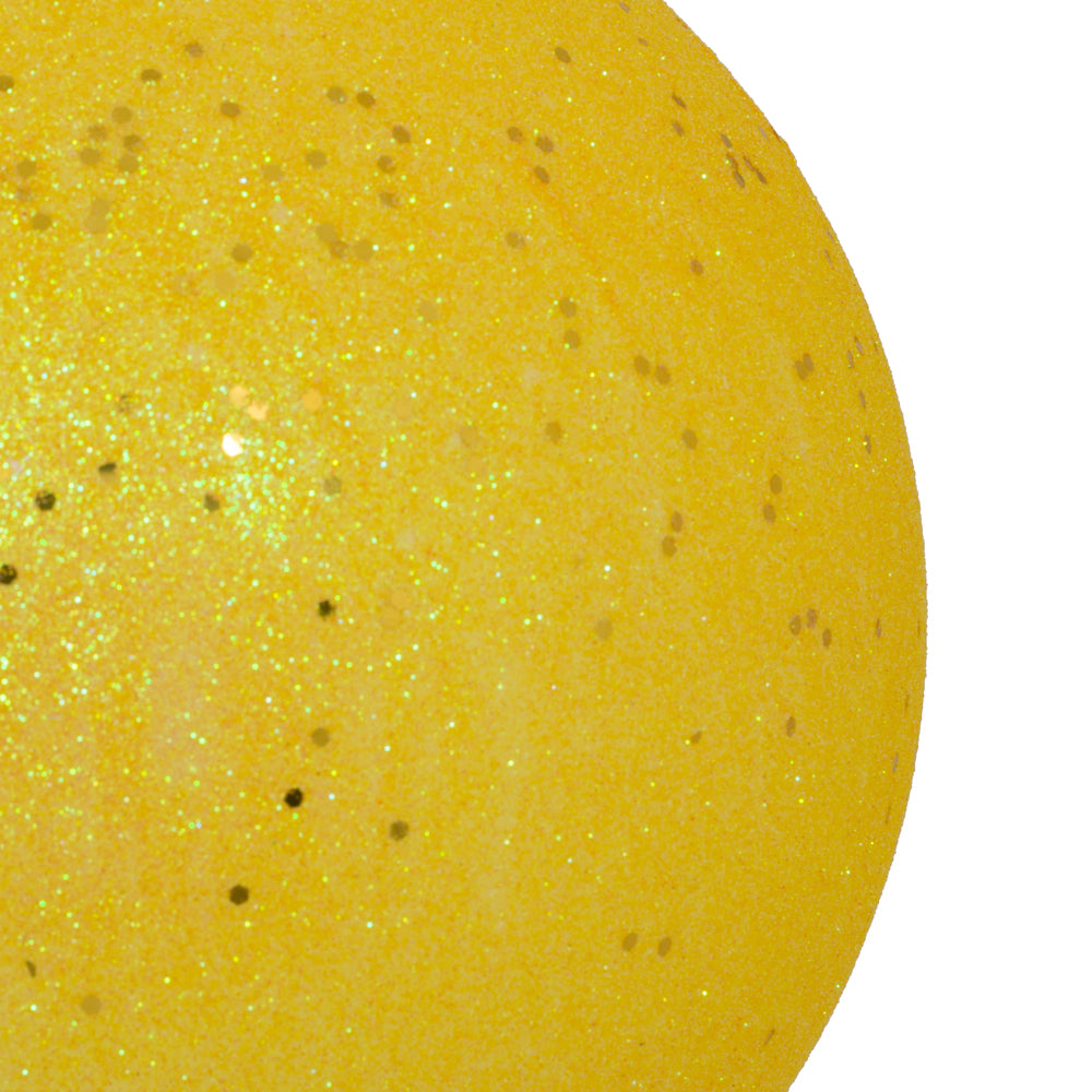 Vickerman 10" Yellow 4-Finish Ball Ornament Set. This set includes matte shiny glitter and sequin finished ornaments for a touch of variety to any holiday decorating project. These ornaments are made from shatterproof plastic. This assortment is an exceptional addition to any collection as it matches well with a variety of décor and goes perfectly on a holiday tree. Includes 4 ornaments per box.