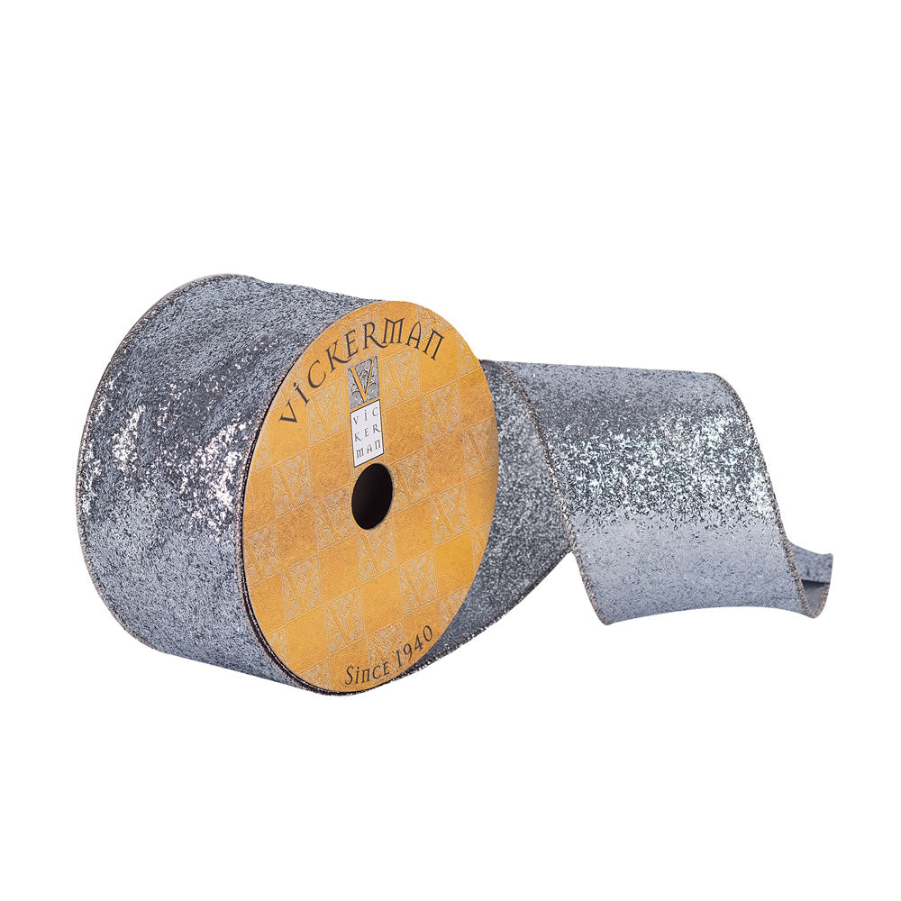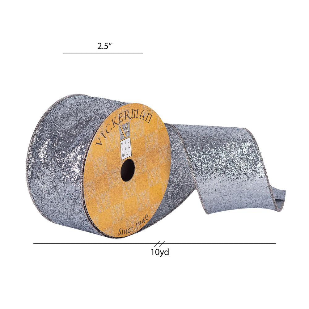 Vickerman 2.5" x 10 Yards Pewter Glitter Woven Dupion Wired Edge Christmas Ribbon. Add this Beautiful Ribbon to any arrangement holiday tree or as a stylish accent to your gift wrapping projects. This ribbon is made with a Dupion Fabric and features a wired edge that allows bending and shaping for easy decorating.