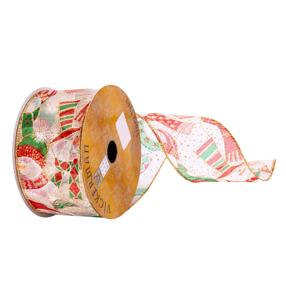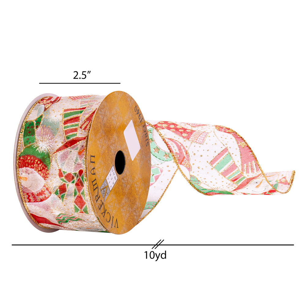 Vickerman 2.5" x 10 Yards White Mesh Snowman Ribbon. Add this Beautiful Ribbon to any arrangement holiday tree or as a stylish accent to your gift wrapping projects. It features wired edges for easy shaping.