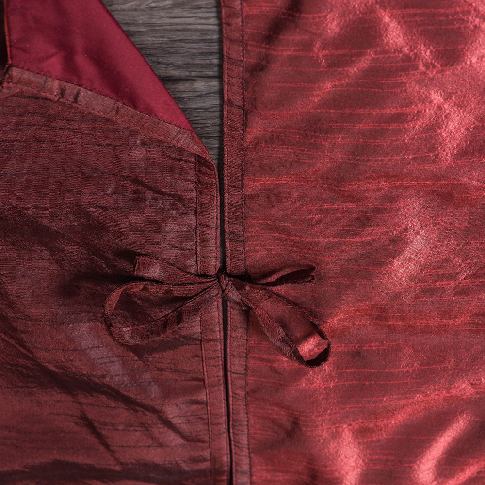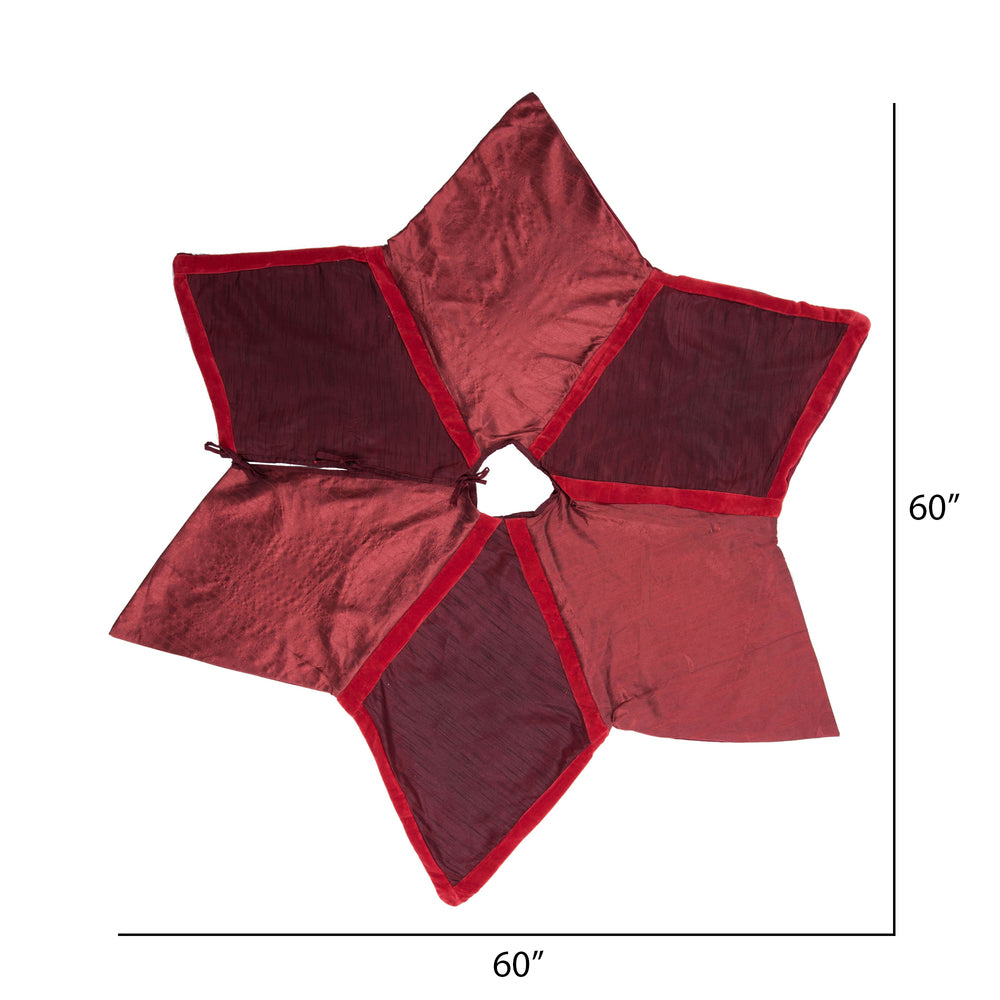 Vickerman Decorative 60" Burgundy Frost Christmas Tree Skirt. The perfect finishing touch for any Christmas tree this gorgeous tree skirt features Luxurious 2 Tone Polysilk Dupioni Pieced With Rich Cotton Velvet; it's Fully Lined; has a Tie Closure and measures 60" in diameter.