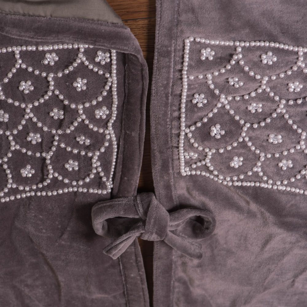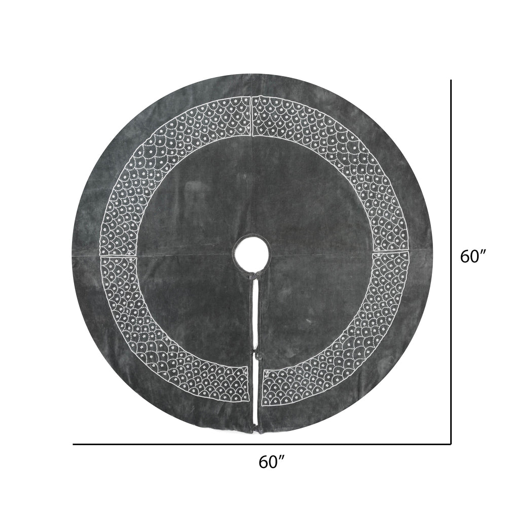Vickerman Decorative 60" Blue Pearl Collection Christmas Tree Skirt. The perfect finishing touch for any Christmas tree this beautiful tree skirt features Rich And Plush Cotton Velvet Encrusted With Seed Pearls And Crystals On The Banded Border; it's Fully Lined; has a Tie Closure and measures 60" in diameter.