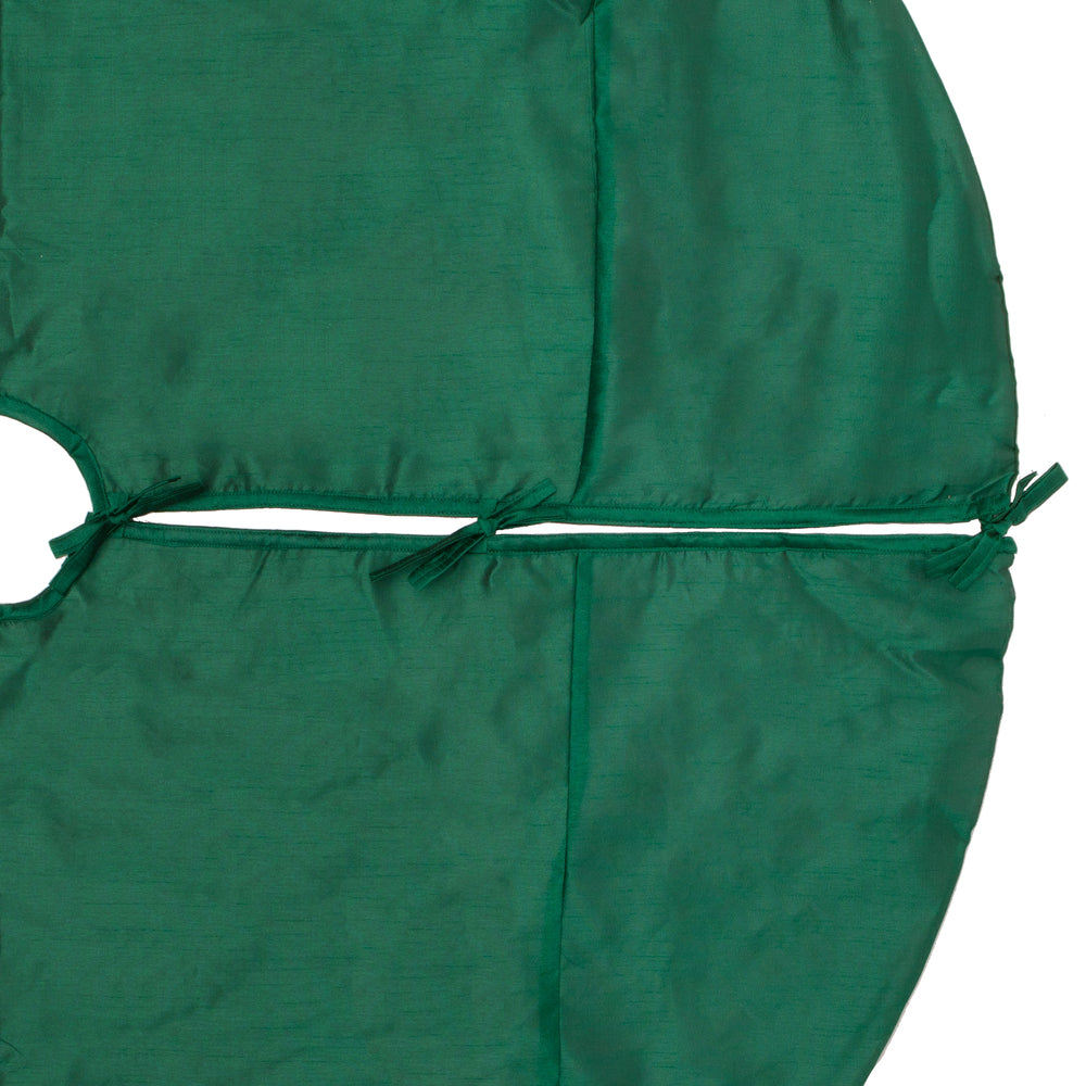 Vickerman 52" Green Beaded Candy Cane Christmas Tree skirt. This tree skirt features green polyester fabric with hand beaded details. It features beaded candy cane details fabric tie closures and a full fabric underlay. The beading is featured along the edged of 3/4 of the tree skirt. Add comfort and warmth to your holiday theme with this beaded candy cane tree skirt.
