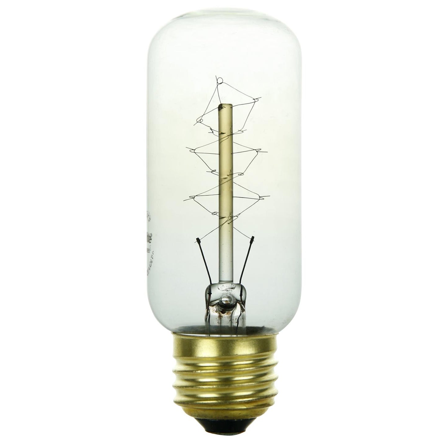 Sunlite, 40 watt incandescent medium based carbon filament antique Style T12 bulb works with most 120 volt lighting fixtures, and will last for an average of 1.1 years. Set the mood with this vintage looking bulb. This tube style bulb mimics the vacuum tubes used in classic radios. The warm amber glow of its hand woven spiral filament creates an ambiance that sets a welcoming tone for any classic interior. Meticulously crafted to preserve the look of early 20th-century lighting, this tungsten filament bulb is the perfect complement to any vintage or contemporary decor. Perfect for hotel, theater, restaurants & other themed venues.