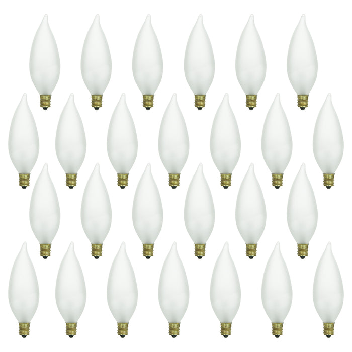 Sunlite 60 Watt Flame Tip Chandelier, Candelabra Base, Frost
