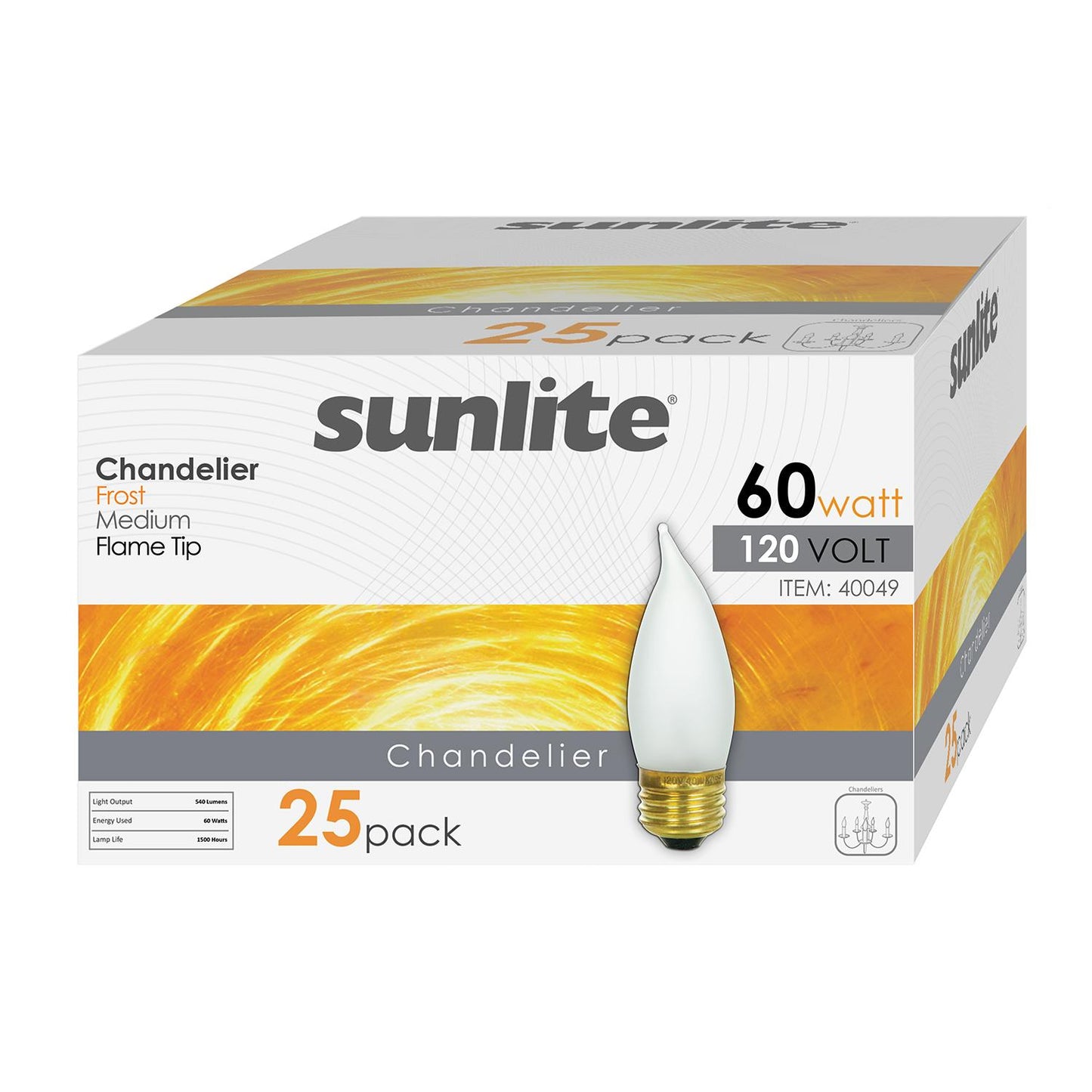 Sunlite 60 Watt Flame Tip Chandelier, Medium Base, Frost