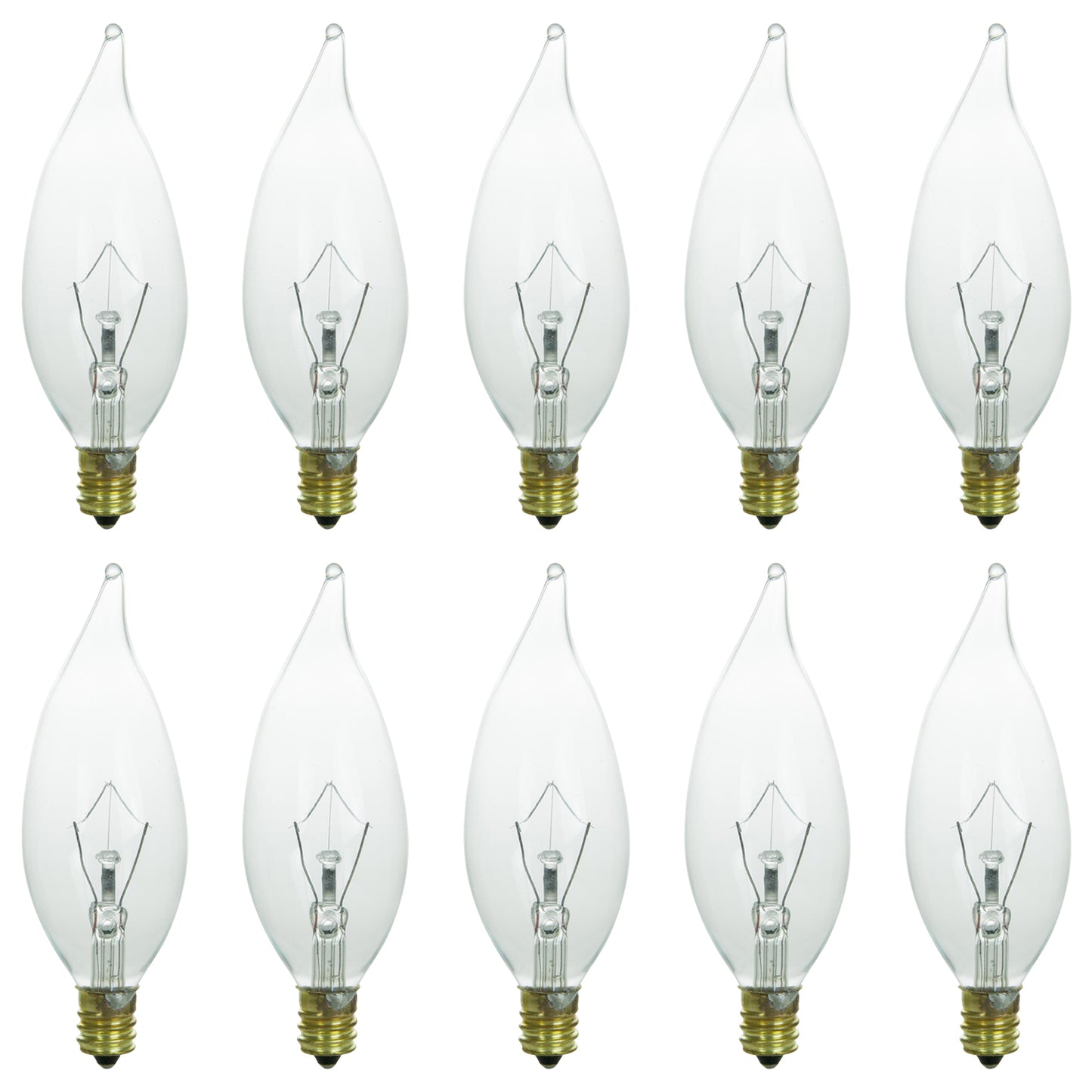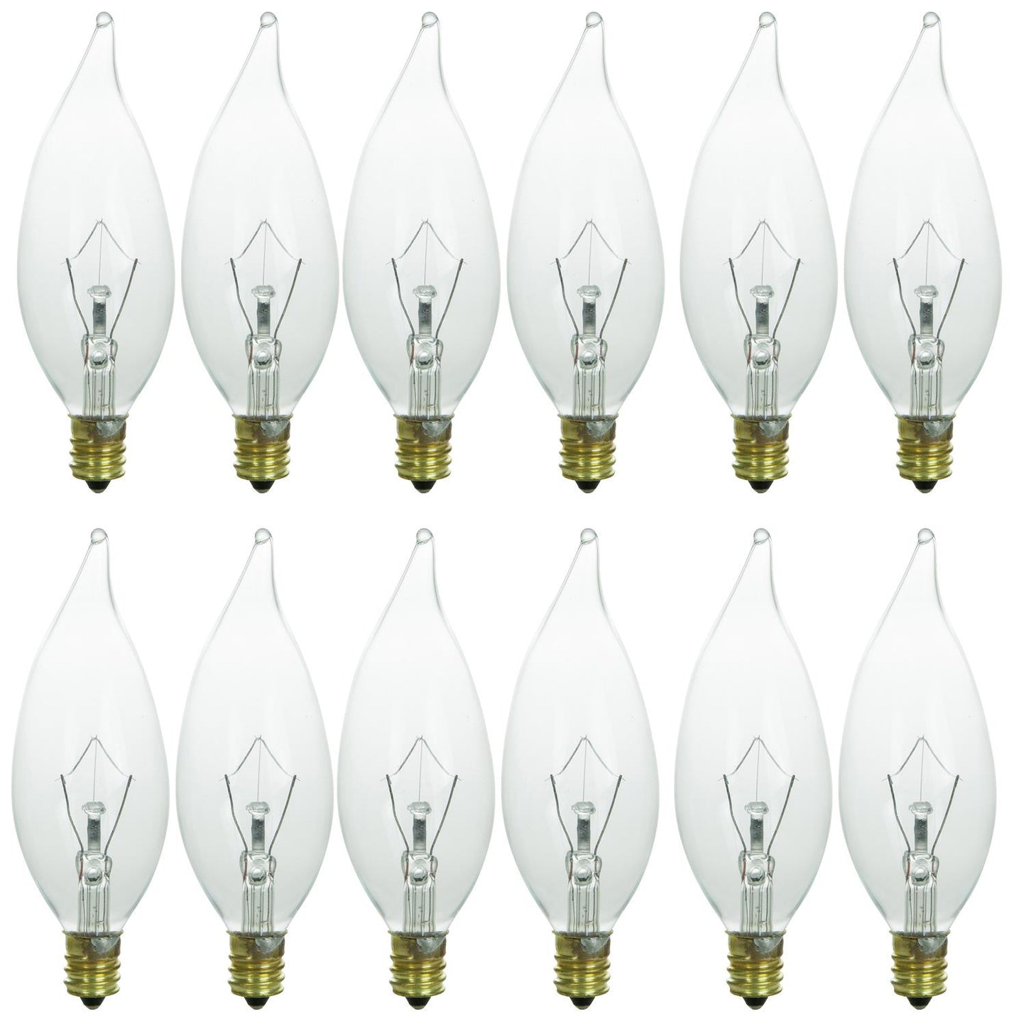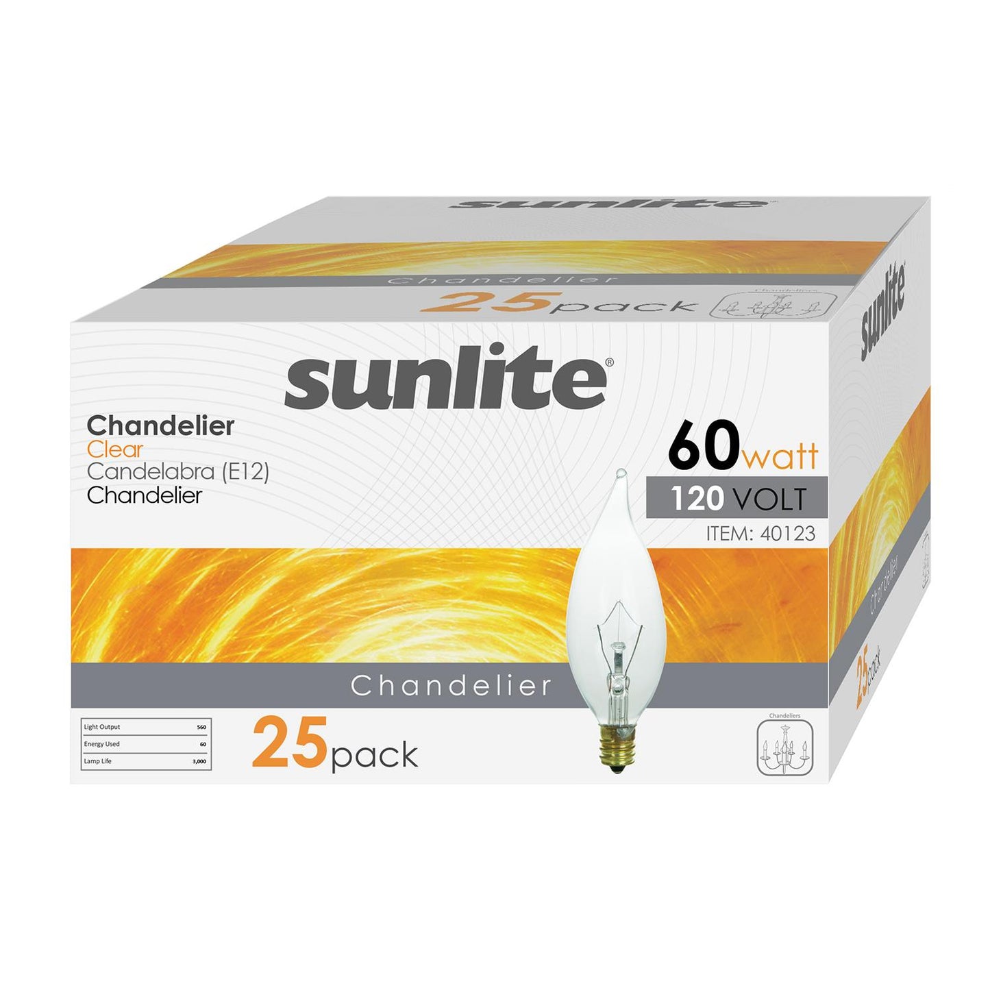 Sunlite 60 Watt Krypton Flame Tip Chandelier, Candelabra Base, Clear