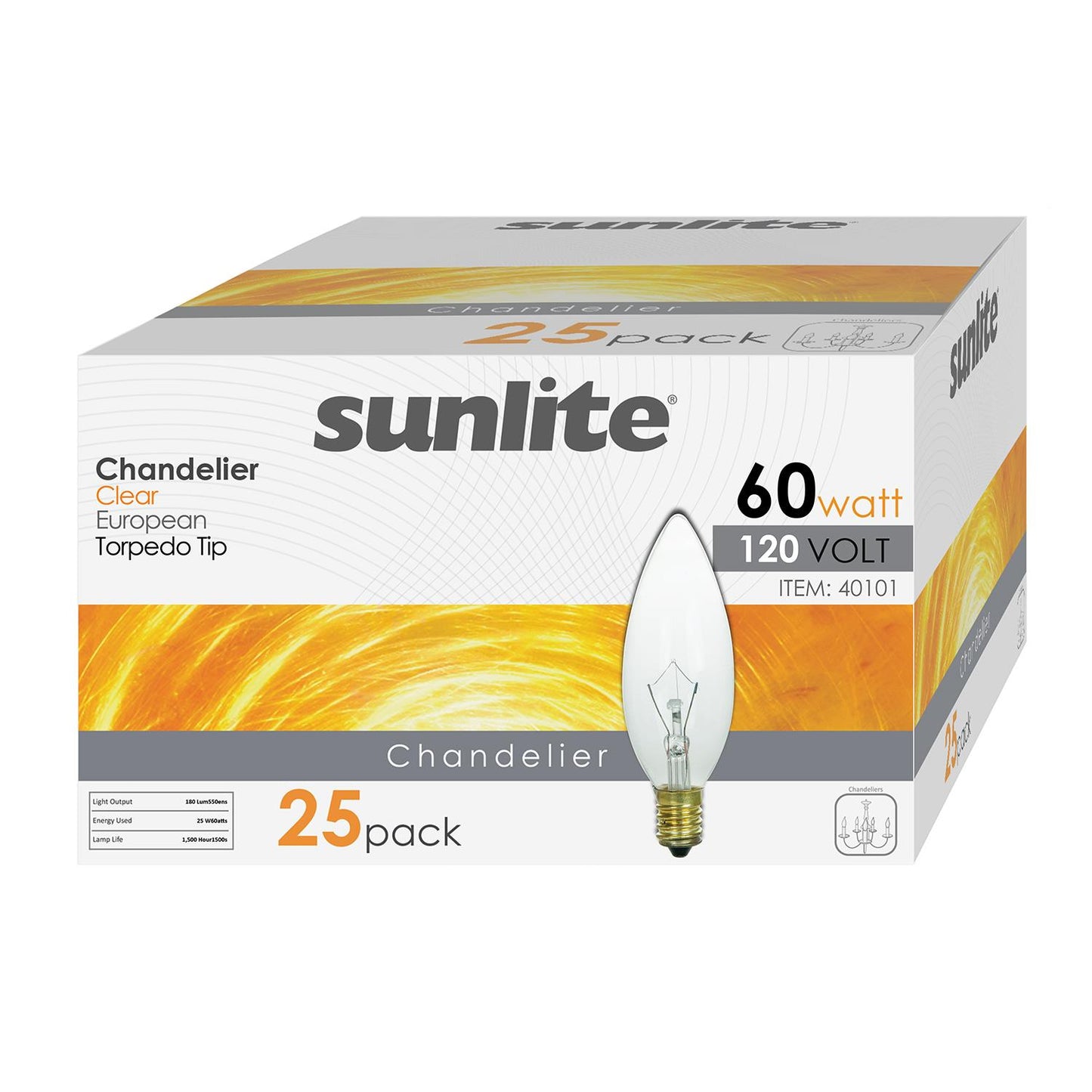 Sunlite 60 Watt Torpedo Tip Chandelier , European Base, Clear