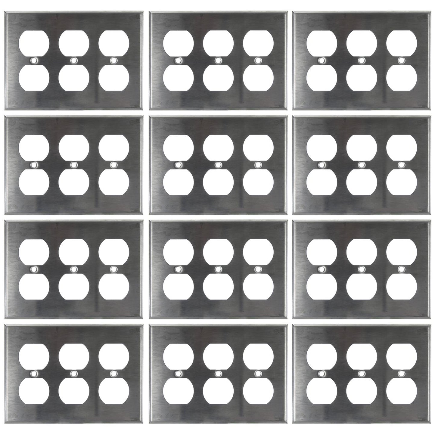 Sunlite E213/S 3 Gang Duplex Receptacle Plate, Steel