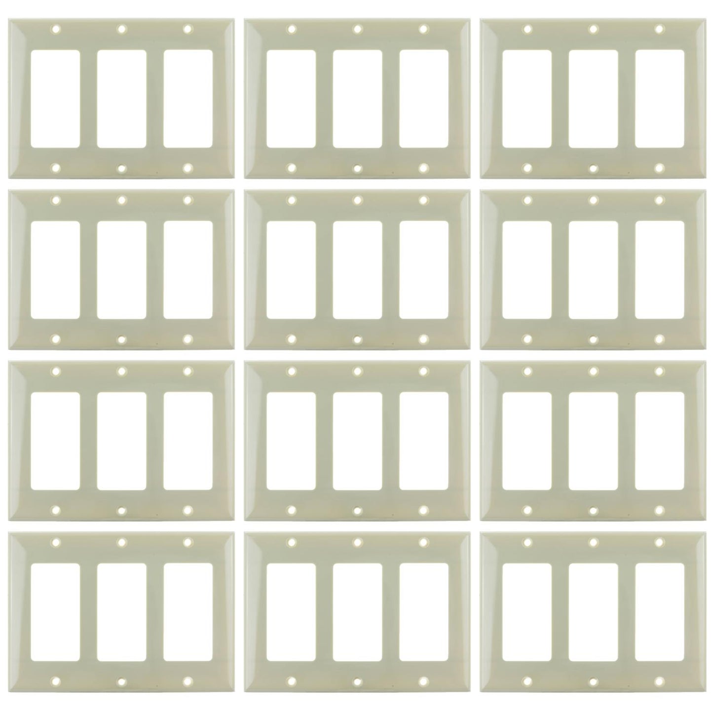 Sunlite 50737 E303/I 3 Gang Decorative Switch and Receptacle Plate Ivory