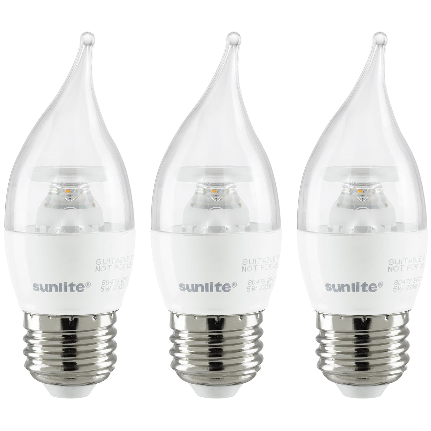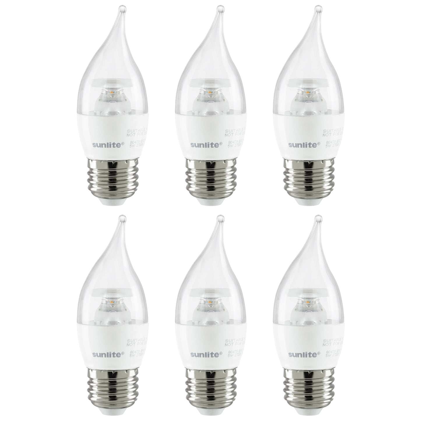 Sunlite EFC/LED/7W/E26/CL/D/ES/27K LED Flame Tip Chandelier 7W (60W Equivalent) Light Bulbs, Medium (E26) Base, 2700K Soft White