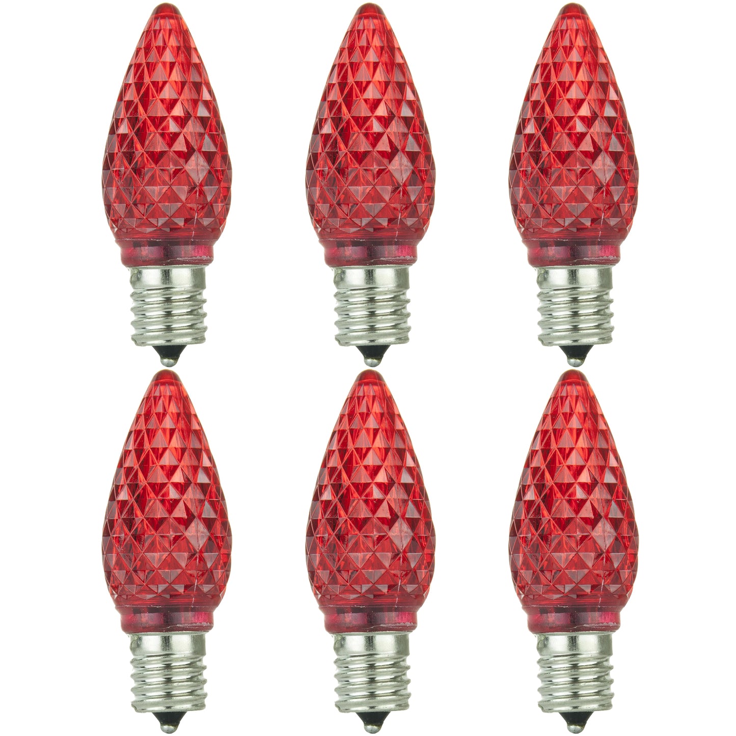 Sunlite 80707 LED C9, Holiday Decorative Light Bulb, 0.4 Watts, E17 Intermediate Base, Faceted Christmas-Lights; Nightlight, Red, 6 Count