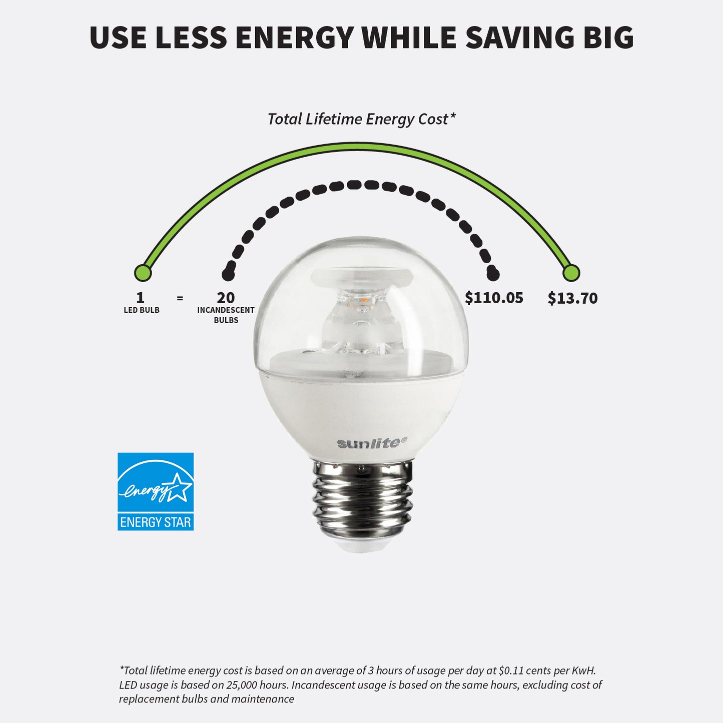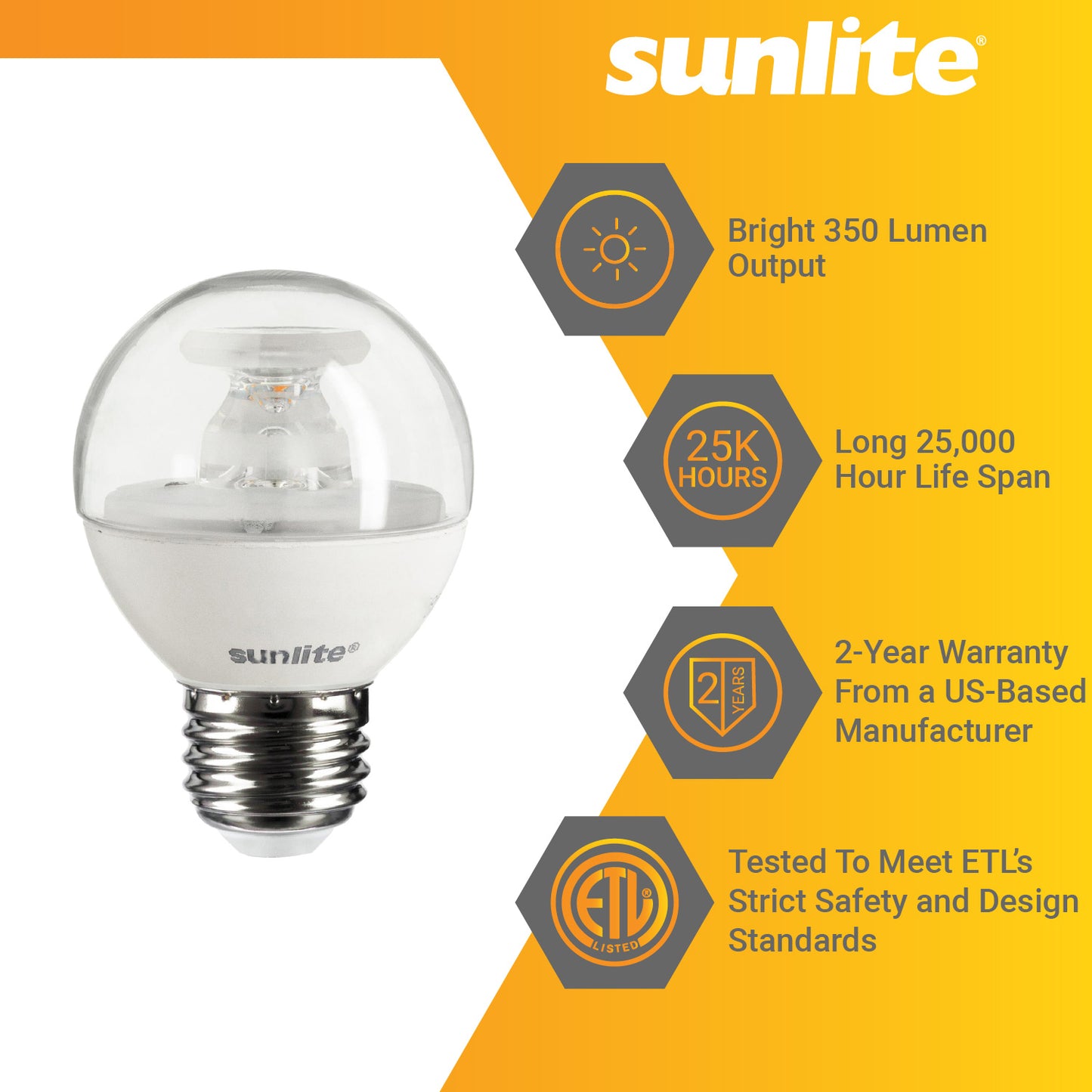 Sunlite LED G16 Globe 5W (40W Equivalent) Light Bulb Medium (E26) Base, Warm White