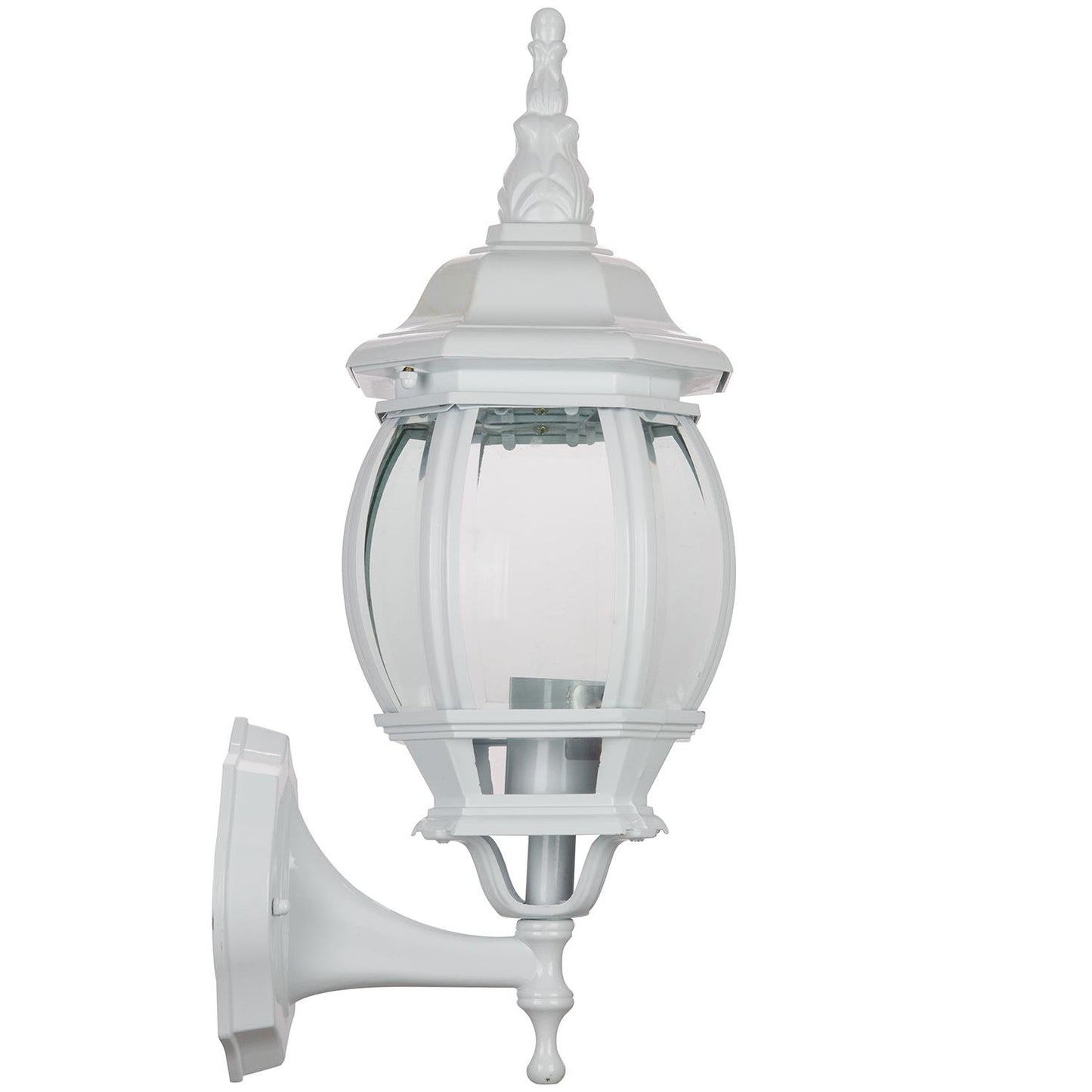 Sunlite Up-Facing Carriage Style Outdoor Fixture, White Powder Finish, Clear Beveled Glass