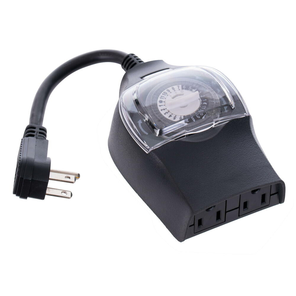 Vickerman Outdoor Mechanical Pin Timer with 14Ga 6" Power Cord and Grounded Plug, and 2 Grounded Outlets, Water proof Clear Cover , 125V 60Hz 15Amp, ETL Approved.